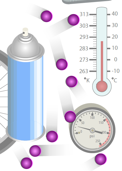 Unit One – Gas Laws: The first unit in the Connected Chemistry curriculum is on the topic of gases: Gas laws, and Kinetic Molecular Theory (KMT). Kinetic Molecular Theory describes the behavior of individual particles (e.g., particles move in straight lines, they elastically collide with each other and with the walls). Gas laws describe the relationships among properties of the system of particles as a whole, when it is in equilibrium (e.g., Boyle’s Law).
