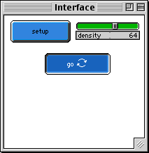 WHAT IS IT? ----------- This project simulates the spread of a fire through a forest. The fire starts on the left edge of the forest, and spreads to neighboring trees. The fire spreads in four directions: north, east, south, and west. The fire's chance of reaching the right edge of the forest depends critically on the density of trees in the forest. HOW TO USE IT ------------- Click the SETUP button to set up the trees (green) and fire (red). Click the GO button to start the simulation. The DENSITY slider controls the density of trees in the forest. (Note: Changes in the DENSITY slider do not take effect until the next SETUP.) THINGS TO NOTICE ---------------- Set the density of trees to 55%. At this setting, there is virtually no chance that the fire will reach the right edge of the forest. Set the density of trees to 65%. At this setting, it is almost certain that the fire will reach the right edge. There is a sharp transition around 59% density. At 59% density, the fire has a 50/50 chance of reaching the right edge. The blue "walls" prevent the fire from spreading off the edges of the screen. EXPLORATIONS ------------ * What if the fire could spread in eight directions (including diagonals)? How would that change the fire's chances of reaching the right edge? In this model, what "critical density" of trees is needed for the fire to propagate? * Add wind to the model so that the fire can "jump" greater distances in certain directions. STARLOGOT FEATURES ----------------- This project uses only patches, no turtles. Each tree uses the StarLogo primitive NSUM4 to determine whether any of the surrounding trees are on fire. Notice how the program gradually decreases the patch color of the red patches to achieve the visual effect of burning. CREDITS and REFERENCES ----------------------- This model was adapted from the fire model the MIT Media Lab. See Resnick, M. (1994) "Turtles, Termites and Traffic Jams: Explorations in Massively Parallel Microworlds." Cambridge, Ma: MIT Press. Adapted to StarLogoT, 1997, as part of the Connected Mathematics Project.