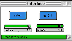 WHAT IS IT? ----------- This model is an example of genetic drift. It shows that competing breeds of turtles, each reproducing with the same parameters each turn, will ultimately converge on one breed without any selection pressure forcing this convergence. The model starts with a random distribution of colored agents. Turtels move by wiggling randomly across the screen. Each turn, a turtle produces between 0 and 4 offspring of its color. If the total number of turtles is greater than the original number, then turtles are randomly killed until the original number is restored. After enough turns, a color will gain a slight dominance; by statistical advantage, a dominant color becomes more likely to win the entire grid. However, because the process is random, there will usually be many series of dominant colors before one color finally wins. The idea, explained in more detail in Dennett's "Darwin's Dangerous Idea", is that trait drifts can occur without any particular purpose or 'selection pressure'. HOW TO USE IT: -------------- The Setup Button intializes the model. The Go Button starts it, and runs continuously. Use the Colors Slider to select the number of colors competing. The Number Slider sets the total number of turtles in the model. Note that the two plots -- one for colors 1-5 and the other for colors 6-10 -- may have different vertical scales. THINGS TO NOTICE: ---------------- Notice the Graphs of the colors. Often colors that start with a higher initial number fail to win the grid. EXTENDING THE MODEL: -------------------- Try writing the model with a 'randomness' slider that increases the randomness in the turtles' movements. How does this affect the rate at which one color dominates the space? Introduce a slight 'selecting pressure' along with the random process shown in the model. RELATED MODELS: --------------- The other models in this set have slightly different mechanisms but also show genetic drift: GD-Local Patches GD-Global Patches GD-Random-walking Turtles