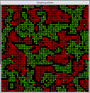 ![]() Segregation This project models the behavior of two types of turtles in a mythical pond. The red turtles and green turtles get along with one another. But each turtle wants to make sure that it lives near some of "its own." That is, each red turtle wants to live near at least some red turtles, and each green turtle wants to live near at least some green turtles. The simulation shows how these individual preferences ripple through the pond, leading to large-scale patterns. For detailed instructions on using the program, take a look at the info window from the Segregation model.