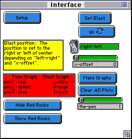 WHAT IS IT? ----------- This model is loosely based on the geological concept of velocity profiles. Seismologists use the travel times of seismic waves in combination with computer modeling software to determine these profiles within the earthıs crust and mantle. In some instances geologists will purposefully set off explosions on the earthıs surface in combination with sensors on the ground to time the speed of the explosionıs shock wave through the ground. The principle behind this technique is that shock waves travel fast through hard rock and slow through soft rock. Additionally, waves that hit the mantle or some other change in rock type at an oblique enough angle will reflect, and waves that hit at an acute angle will diffract. In this model these properties are simplified. Waves originate from a single blast source, they go faster through red rock, and they reflect off of the mantle. HOW TO USE IT -------------- The mantle is represented by the black strip at the bottom of the screen. Soft rock is colored brown and hard rock is colored red. To start a new simulation click the "setup" button. This will remove all red patches from the simulation and initialize the screen. To draw red rocks (color 15), use the drawing tools to draw in the graphics window. Position the blast source using the "right-left" switch and the "x-offset" slider. Set it off using the Set Blast button. To make a blind simulation hit the button titled "Hide Red Rocks". This will make the red rocks invisible in the simulation window. The button "Show Red Rocks" will make them visible. The graphs in this simulation are operated using two controls. The button "Clear All Plots" clears all of the pens and "Make Graphs" creates a set of three graphs. The execution of the simulation occurs in two phases. The first wave released goes faster through red rock and is referred to as a modifiable wave. The second wave travels at uniform speed through all materials and is referred to as an unmodifiable wave. The y-axis is the return time of the wave and the x-axis is the horizontal position of the sensor receiving the wave. Plot window three is a composite graph of unmodified return time minus modified return time. The composite graph is useful for visualizing subtle differences between the two graphs. THINGS TO NOTICE ---------------- The shape of the unmodified wave is a parabola. The equation of the graph is: 2 * Square Root ( ( .5 * xcor ) ^ 2 + ( Mantel Depth) ^ 2 ). The composite graph is intended to illustrate differences between the modified and unmodified graphs. Notice that with rectangular shapes there are multiple critical points on the graph. Some portions of the wave may travel through a rock formation twice. How does this change the shape of the graph? THINGS TO TRY ------------- Create a simple shape out of red rocks and hide it using the "Hide Red Rocks" button. Have someone else use the model and ask them to predict what the shape and placement of the formation is. Try to find critical points on the graph. Especially in the case of a square formation there should be some critical points. Try to explain these points with the geometry of the rock formation. As an investigative technique try creating waves from different locations around the rock formation. Use the "the-pen" slider to fit multiple plots on the same composite graph. EXTENDING THE MODEL ------------------- Try to create a better system or equation for visualizing the red rock formations. To do this make modifications to the procedure "graphit". Implement diffraction between rock surfaces in the model. Try to imagine how this would change the shape of the graphs. Try implementing different rock types with different densities using a new rock color. STAR LOGO FEATURES ------------------ Many of the graphs have dips in them. These imperfections are points without data and should be ignored. The procedure "random-real" uses the shift-right primitive. The number 65535 is equal to 2^16 1. Or in binary it is 1111 1111 1111 1111. The decimal part of a starlogo number is stored in the low word. Random 65535 shift-right 16 creates a random number between one and zero. When added to an integer it forms a "random-real" number.