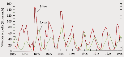 . Fluctuations of the sizes of predatory lynx and prey hare populations in Northern Canada from 1845-1935 (Purves et al, 1992).3.1. The embodied approach
