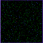 At first, he assumed there was a bug in his computer program, but he couldnt find the bug. To try to get a better understanding of what was going on, he decided to color-code the particles according to their speed: particles are initially colored green; as they speed up, they get colored red; as they slow done, they get colored blue. Soon after starting the model running, Harry observed that there were many more blue particles than red particles. This color distribution gave him a concrete way of thinking about the asymmetric Maxwell-Boltzman distribution. He could "see" the distribution: initially all the particles were green, a unform symmetric distribution, but as the model developed, there were increasingly more blue particles than red ones, resulting in a skewed asymmetric spread of the distribution.