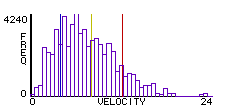 A dsitribution can be seen as a new form of emergent object. In the slime mold example, the emergent object was spatial that is, a spatial agglomeration of slime cells. In other words, there was a detectable pattern in the x-y position of the slime cells. In the gas particle example, the pattern is not in x-y positions of the particles, but in another parameter, the speeds of the particles. Because speeds unfold over time, this pattern is more difficult to detect, resulting in a less perceptually-obvious emergent object. Yet, fundamentally, the speed distribution and the slime-mold clusters are in the same category emergent objects. By color-coding the particles, Harry made this speed distribution pattern more perceptible; the asymmety of the color distribution leaped out from the screen. Harry went further and used StarLogo to create a dynamic histogram of particle speeds this enabled him to see the Maxwell-Boltzman distribution unfold over time.