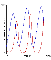 Oscillation in wolf (red) and sheep (blue) population