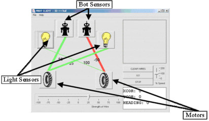 The VBOT system is a set of "Virtual roBOTics" activities based in the NetLogo and HubNet architectures. The system and activities are designed for use by students in middle school or early high school. Using VBOT, each student programs his or her own virtual robot that interacts with other virtual robots in a shared environment. Considerable work has been done with robotics in constructionist learning environments in the last twenty years; this project builds on those findings with new insights on the role of virtuality and collaboration in educational robotics. The students build simple circuits with which virtual robotic agents can perform certain collaborative tasks (e.g., flock together near a virtual light source).