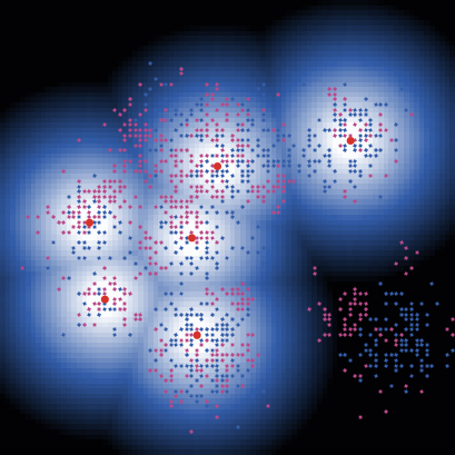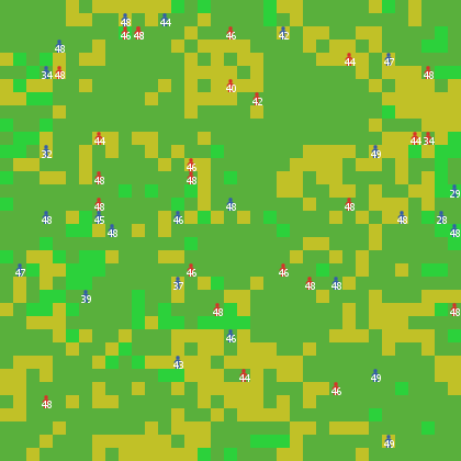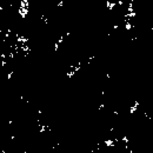 This is a second model showing how structure can form out of randomness. Both of these models are implementations of models found in Michael Batty's book "Cities and Complexity".