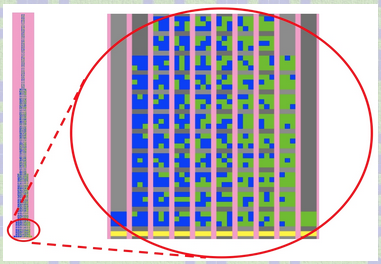 9-Block Stalagmite Solo is your opportunity to build up the combinatorial sample space of all the possible arrays of 3-by-3 squares, in which each square can either be green or blue. What is your strategy? In 9-Block Stalagmite, we discuss some strategies. Note that due to the large size of this sample space, it was not possible to fit it all in without requiring lots of scrolling up and down. However, this applet should allow you to figure out how to create many 9-blocks without repetition and without skipping any along the way. This skill will help you when you participate in the HubNet version of 9-Block Stalagmite, in which you compete against other participants.