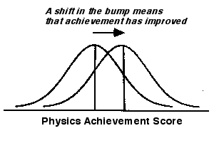 If the bump of collective performance moves to the right, as illustrated in Figure 1, then the intervention (e.g. increased classtime, use of a particular text, or animated lectures) is labeled effective. Performance, understanding, or ability in almo st any area can be defined operationally in such a manner, and the effectiveness of an intervention can be established object-ively. School curricula and pedagogy rise and fall according to their ability to shift the bump of (what is assumed to be ) a normalized distribution.