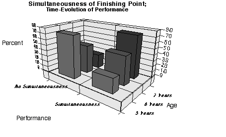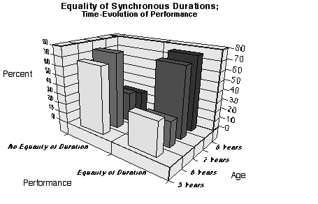 If Piagets findings are plotted on three-dimensional axes, the respective graphs for the development (time-evolution) of simultaneousness and synchronous duration that result are shown on Figures 3 and 4.