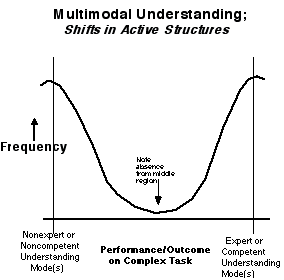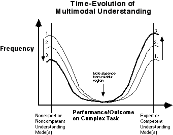 Figure 7 depicts shifts in understanding of the sort expected under the constructivist model outlined earlier. This general fit is important but so, too, is the fact that the ways of thinking associated with the non-expert modes of thinking can be ide ntified readily and investigated carefully (see Stroup, 1994, 1996). These other forms of understanding are as important to the work of cognitive researchers and educators as are the forms of understanding typically identified as expert or competent. In creasingly sophisticated and nuanced forms of rendering results can be drawn for the purposes of analysis that move well beyond the rather limiting capabilities associated with various parametric statistics.